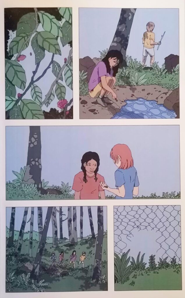 In Solleone di Noah Schiatti (asterisco edizioni, 2020), breve storia dalle tinte pastello, seguiamo l’estate di Andante, unə bambinə di nove anni in vacanza dalla nonna. Durante le sue esplorazioni scopre un buco nella recinzione e incontra quelle che saranno le sue compagne di giochi. Ma come presentarsi a loro? “Andante. Mi chiamo così”, un participio impersonale, che significa semplicemente “in movimento”. È l’inizio di un’amicizia che procede attraverso avventure, curiosità, incertezze, paure. La delicatezza dei toni si accompagna a dialoghi schietti e realistici, adatti all’età effettiva deə protagonistə. L’atmosfera è intrisa di quel silenzio significativo che accompagna l’osservazione e la scoperta, il confronto dei corpi, che richiama a tratti Tom Boy (2011) di Céline Sciamma. Il cambiamento è tuttavia trattato in forma più astratta e indefinita: un perenne divenire, che passa prima ancora di poter essere compreso e spiegato. Ritroviamo tutta la malinconia dei ricordi d’infanzia, nel constatare come fosse tutto più semplice, ma anche profondo e autentico. Solleone è la storia di chiunque ricerchi il proprio passaggio segreto attraverso la recinzione.