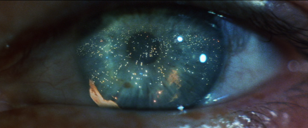 Tutti questi elementi postmoderni sono ulteriormente esasperati dalla grigia estetica architettonica pessimista, dall’atomismo sociale preso in prestito dalla narrativa hard-boiled e dalla distopica disfatta biologica. I toni freddi della Los Angeles del 2019 sono illuminati dai neon quando nei vicoli questi non sono annebbiati dai vapori che escono dai tombini, sintomatici di una crisi ambientale silenziosamente narrata da una pioggia costante e dall’esaurimento delle risorse alimentari; la biosfera è artificialmente creata dalla bioingegneria, che dà vita ad animali sintetici che in quanto tali, direbbe Cartesio, due volte sono sprovvisti d’anima.